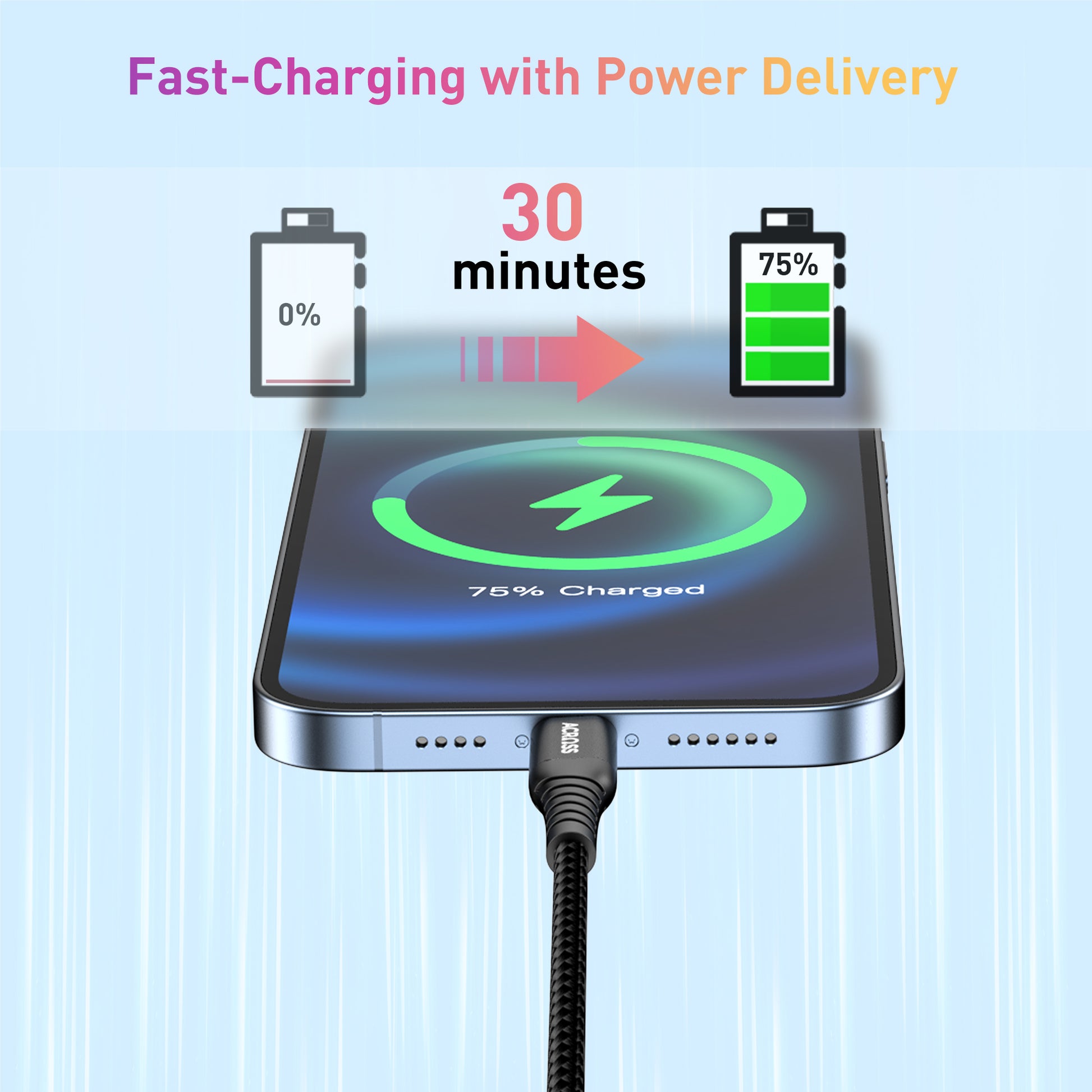 Share and sync your valuable data in seconds. Whether it's large files or important documents, our cable facilitates seamless data transfer between your USB-C and Lightning devices.