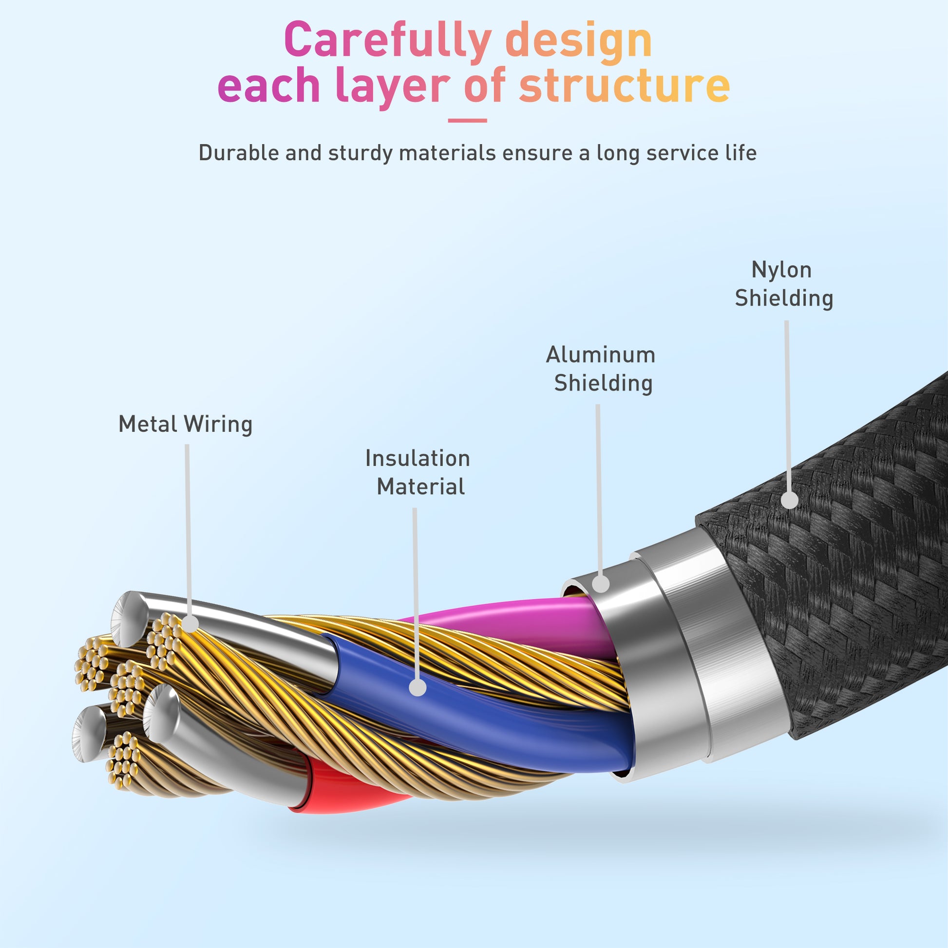 The tough nylon braided exterior not only provides an extra layer of protection but also prevents tangling and knotting, ensuring hassle-free usage every time.