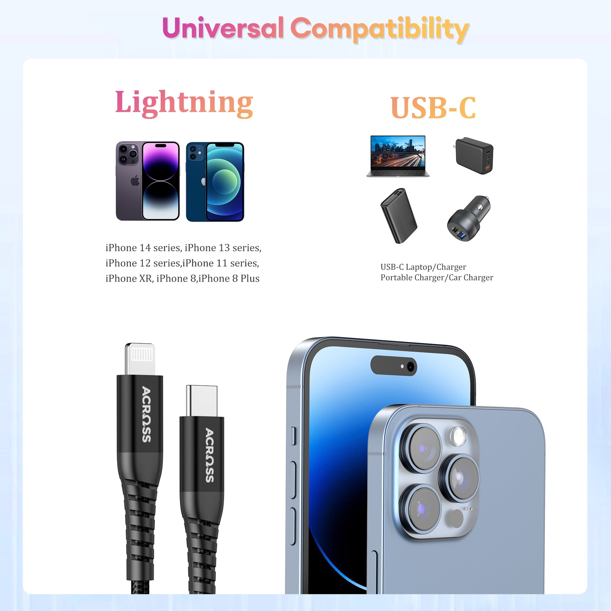 Apple Devices: This cable is MFi (Made for iPhone/iPad/iPod) certified, guaranteeing flawless compatibility with all Lightning-enabled Apple devices.