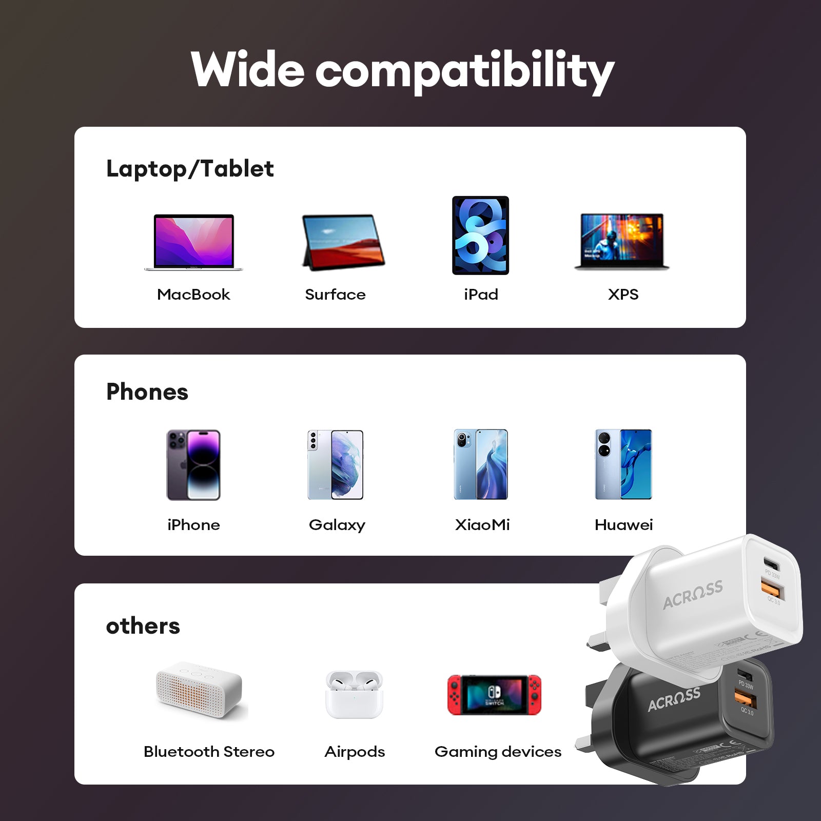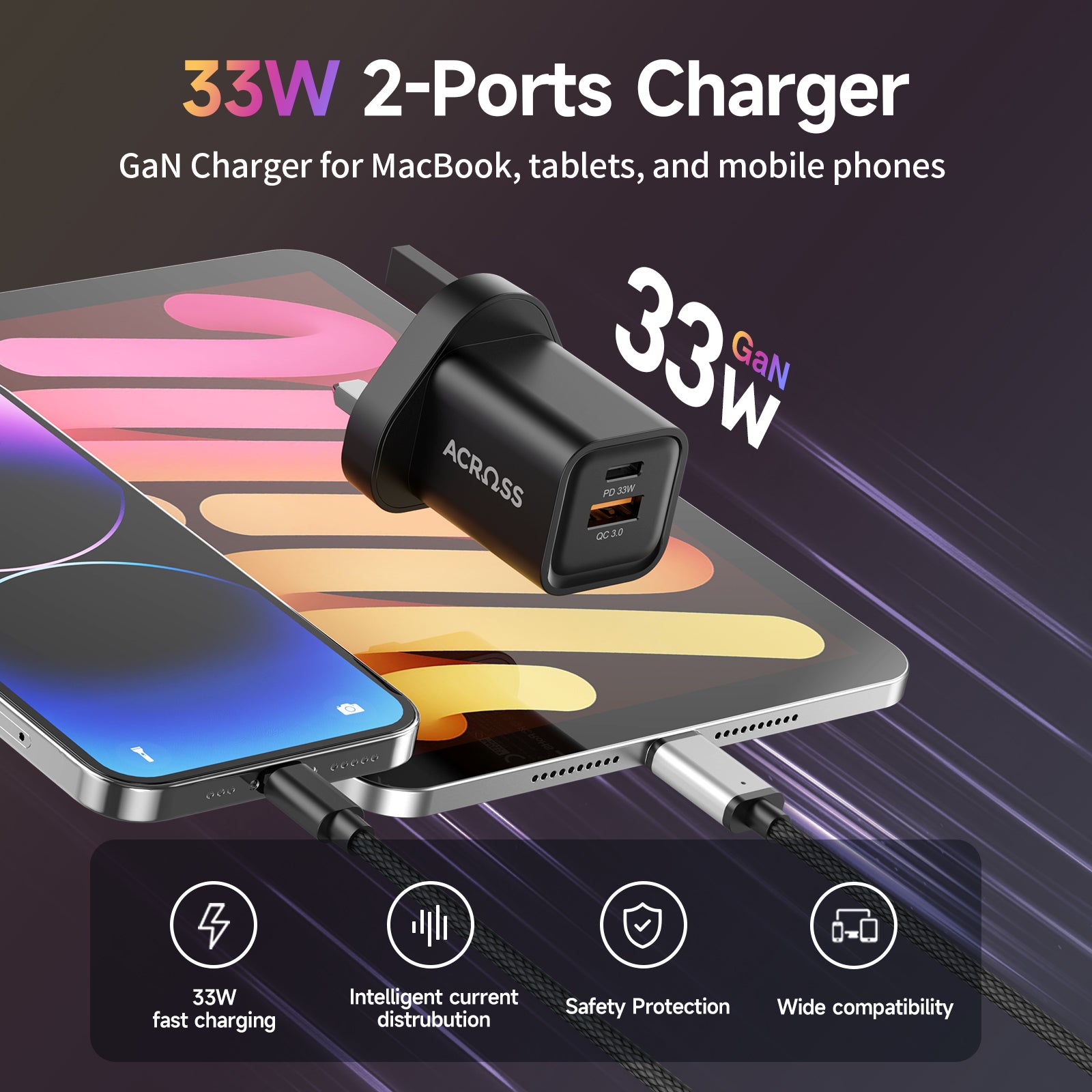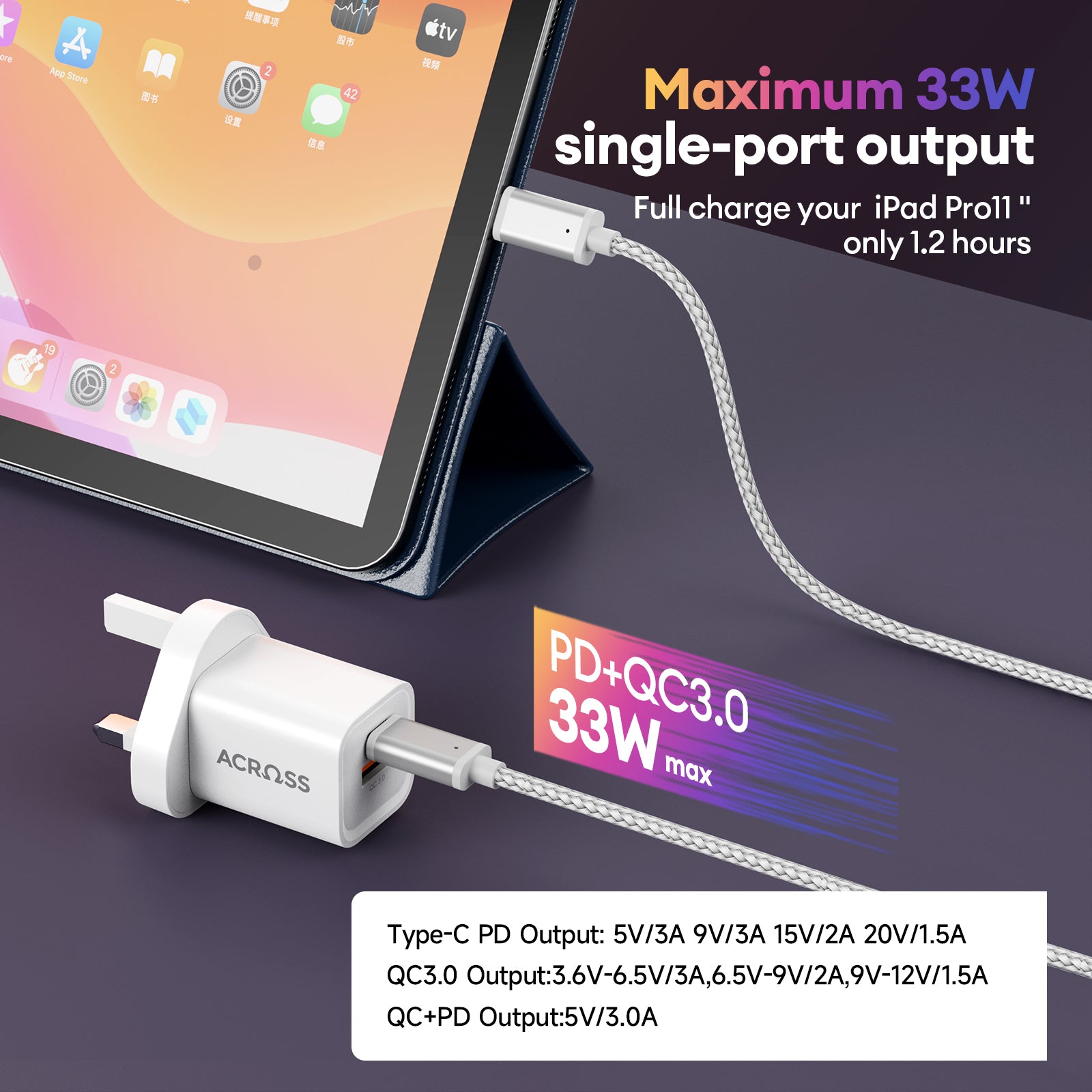 1 x Across SpeedCharge 33W PD+QC3.0+PPS Wall Charger