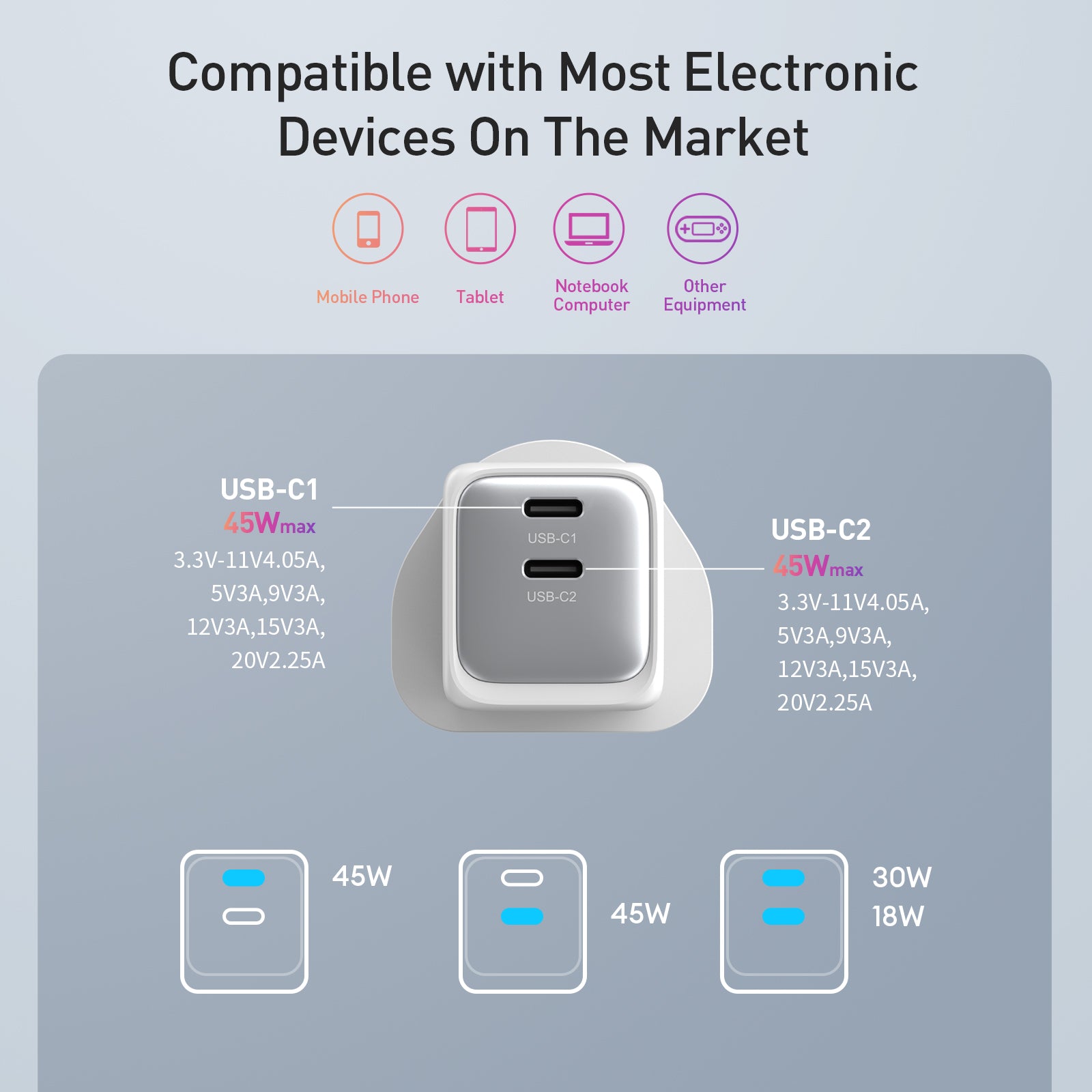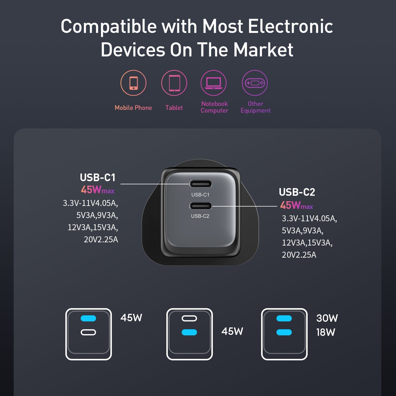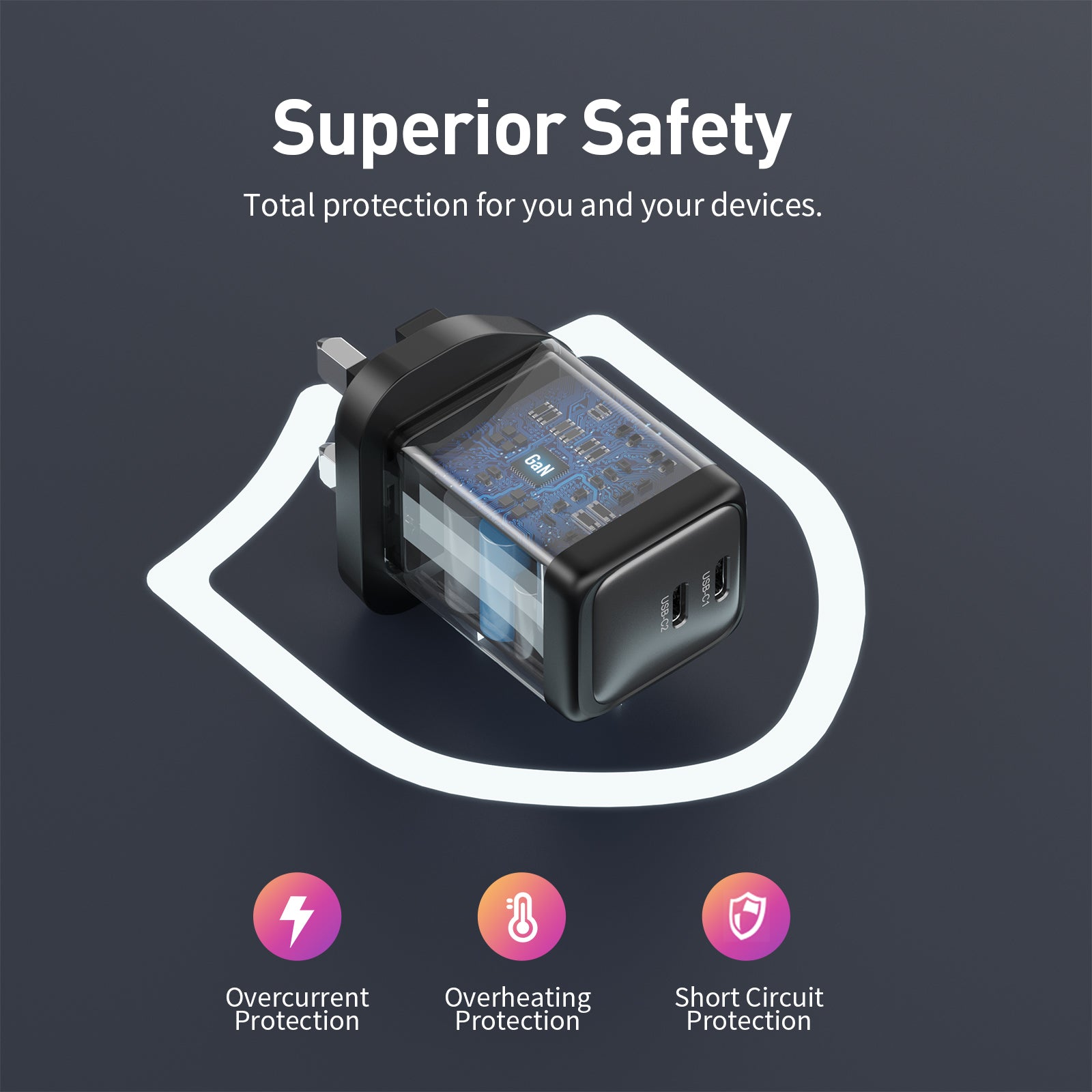 Provides a robust 48W output for swift and efficient energy transfer, reducing overall charging times.